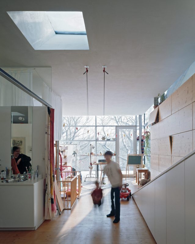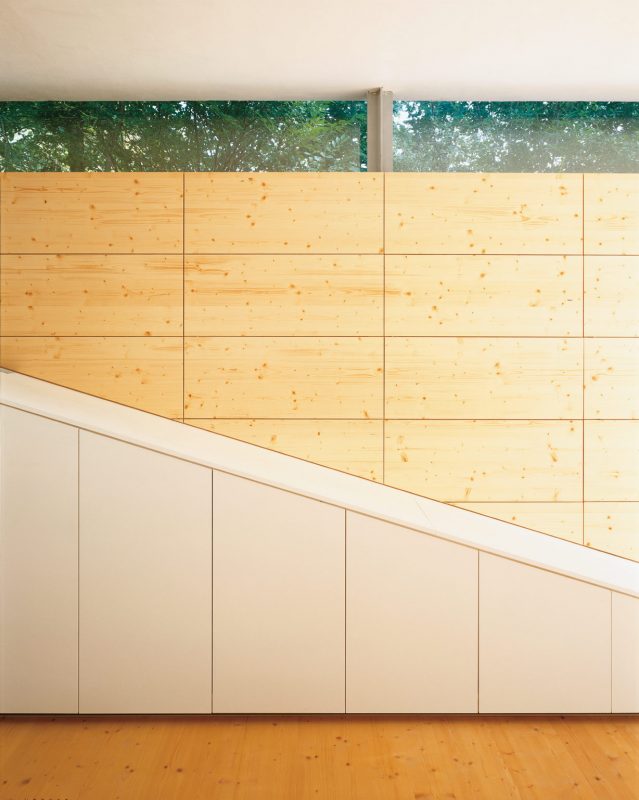 Das Gebäude Ist Als Erdhaus Mit Geringen Außenflächen Konzipiert, Um Wärmeverluste Zu Minimieren. Die Dachflächen Sind Als Horizontale Hangerweiterung Interpretiert. Das Bestehende Gelände Wird Beibehalten Und Im Innenhof Zwischen Den Beiden Bauteilen Auf Die Alte Kontur Des Hanges - Vor Der Errichtung Des Bestehenden Gebäudes - Zurückgeführt. Das Gebäude Ist Teil Der Umliegenden Landschaft. Die Unterirdisch Liegenden Räume Werden Durch Lichtfänger Im Dach Ausgeleuchtet. Der Innenausbau Erfolgte Ganz In Holz Und Teilweise Im Selbstbau.